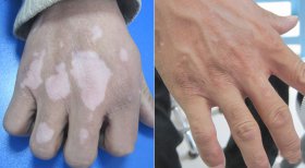 手部白癜风白斑、白点症状:很多人的白斑都出现在手部,因为手部接触化学物质比较频繁,所以,有害的化学物质会引起色素脱失,逐渐产生小白斑、小白点,虽然白斑不痛不痒,但扩散的速度很快,会逐渐扩散蔓延至手臂或是其他部位。