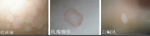 白癜风、花斑癣、玫瑰糠疹等都是以白色比正常肤色浅的形式出现。这些疾病普通检查不好鉴别。因为都是色素脱失,这类疾病有的患者反映痒,有的反映不痒,因为每个人应急反映差异,感受不一样。所以光凭【肉眼经验判断+伍德灯简单检查(因荧光反应和个体差异容易误诊】容易发生误诊。