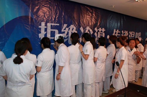 配图:沈阳肤康皮肤病医院医护人员现场签名呼吁关爱白癜风患者